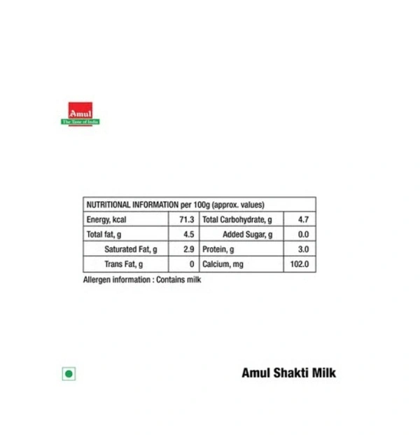 Amul Shakti Milk (Polypack) is packed with the goodness of essential nutrients. It is popularly used in the preparation of sweets, curd, tea, coffee etc. or can even be consumed directly