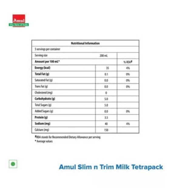 Amul Slim 'n' Trim Skimmed Milk (Zero Cholesterol)