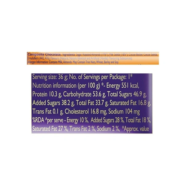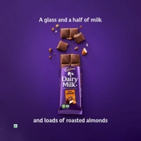Kuch achha ho jaaye, kuch meetha ho jaaye with Cadbury Dairy Milk. Generously made with a glass and a half of milk and comes with the goodness of roasted & crunchy almonds. This milk chocolate bar pack is perfect sweet for snacking or as a chocolate gift pack for gifting on special occasions like birthdays and get-togethers. Made from 100% sustainably sourced cocoa and suitable for vegetarians.