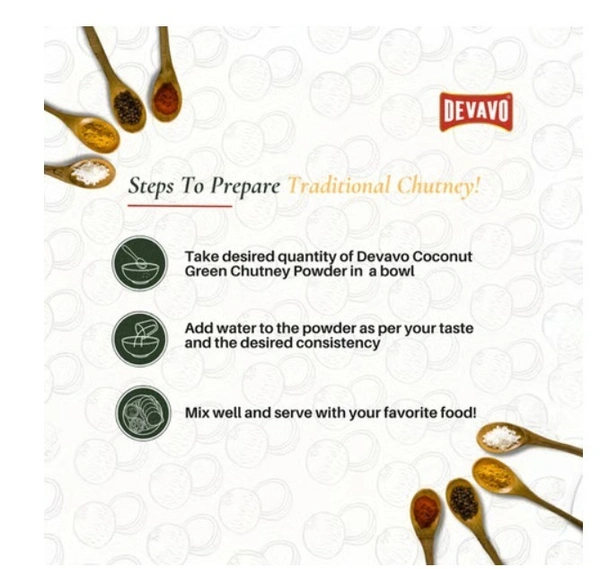 Savor the taste of traditional south indian cuisine with our coconut chutney powder (instant mix). Crafted from a cherished, authentic recipe, this chutney powder delivers the perfect blend of flavors without the hassle of time-consuming preparation. Simply add water to the mix, adjust to your preferred consistency, and enjoy a fresh, aromatic coconut chutney in minutes.