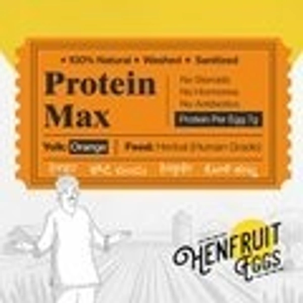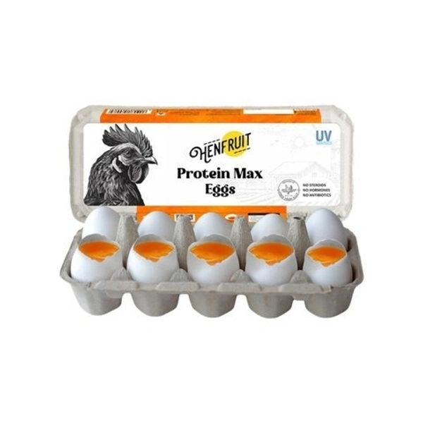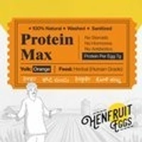 These are specialty chicken eggs marketed as "Max Protein" eggs — meaning they’re positioned as having higher protein content than regular eggs. They’re sold in packs of 10 (and larger) for daily consumption.
