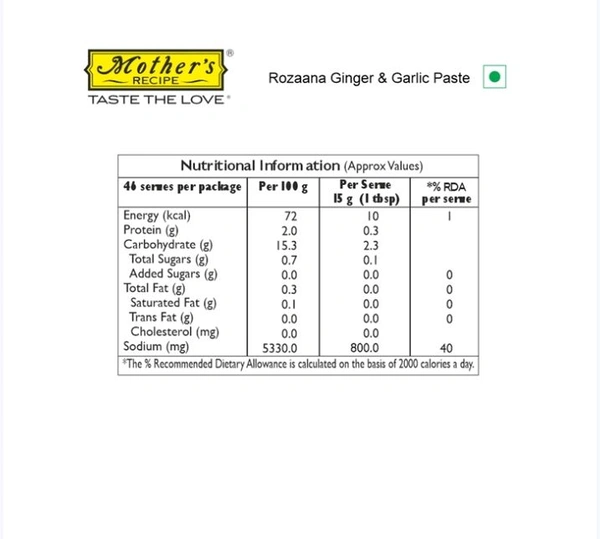 Mother’s Recipe Rozaana Ginger & Garlic Paste – Freshness in Every Spoon