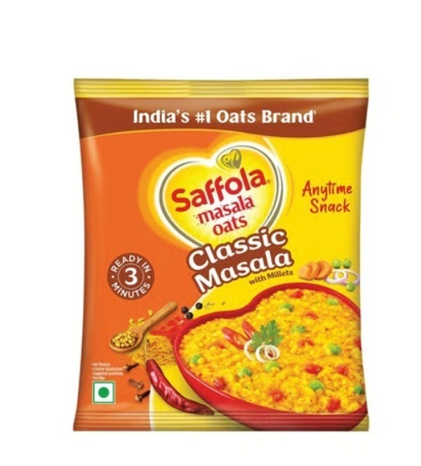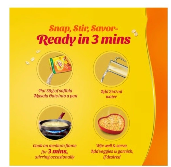 Saffola Masala Oats, a tasty blend of yummy masala, veggies and 100% wholegrain Oats, is the perfect snack for all small hunger cravings. You can enjoy this as a delicious bowl or top it up with peanuts or pomegranate seeds!