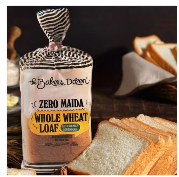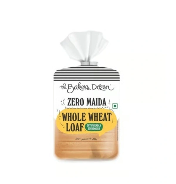 The Baker’s Dozen Zero Maida Whole Wheat Sourdough Brown Bread is a brown sourdough loaf made without maida (refined flour) and designed for everyday healthy eating. It’s crafted primarily from whole wheat flour and uses natural sourdough fermentation to give it a mild tangy flavour and improved digestibility compared with regular commercial breads.